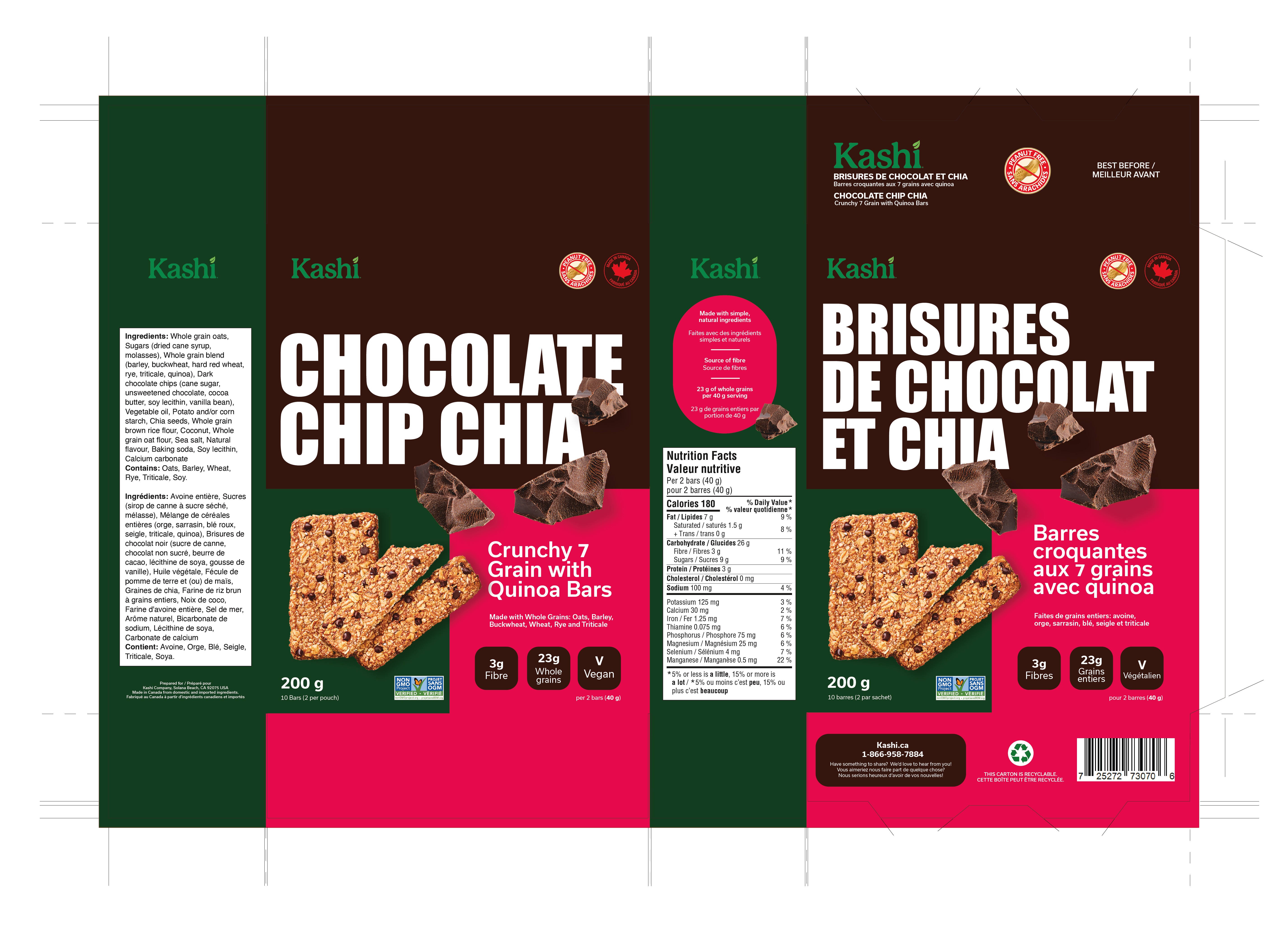 Jʼai reçu le mandat de concevoir un emballage décliné en trois saveurs pour un produit alimentaire sec. Lʼimage du produit devait répondre aux exigences dʼune production commerciale et être bilingue. Le français devait être priorisé, puisque lʼemballage était destiné au marché québécois.